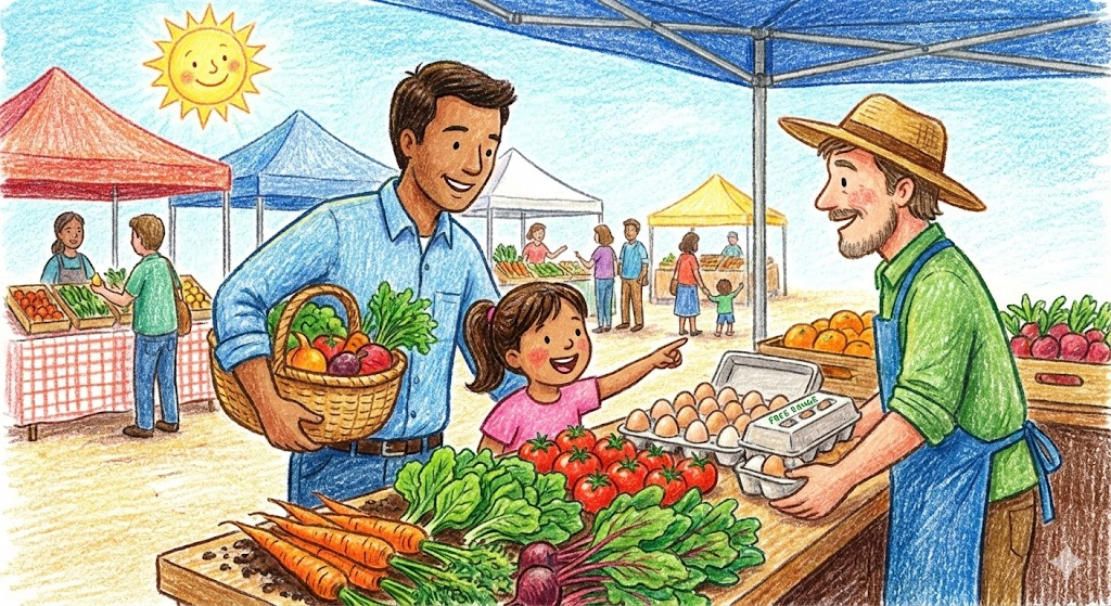 スーパーも便利だけど、たまにはこういう市場(マルシェ)に行ってみるのも、宝探しみたいで楽しいですよね。 「この野菜、どんな料理に合うん?」なんて生産者さんとお喋りするのも、食育のいい勉強になりそうです🍆