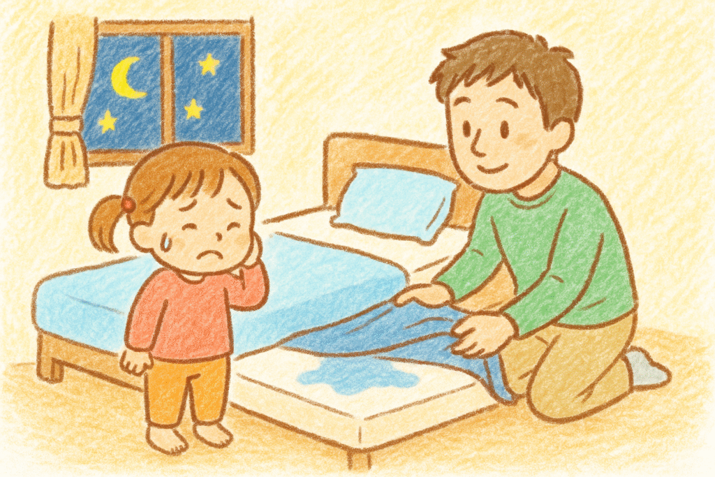 「おねしょも成長のひとつやなぁ」