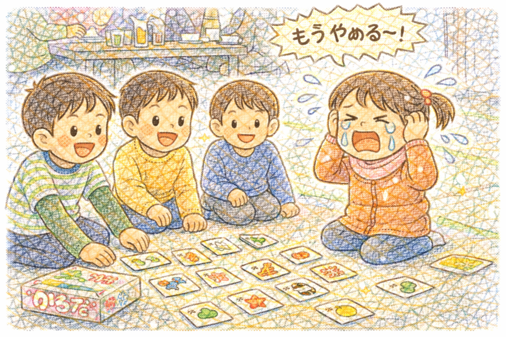 一人っ子の娘は、兄弟げんかや勝ち負けの経験がまだ少なくて、気持ちの整理が追いつかなかったみたい。