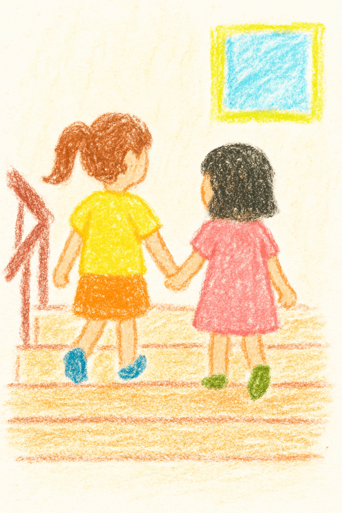 今朝も玄関で顔を合わせると、りんちゃんが「手つなごう!」と声をかけてくれて、二人はすぐに仲良しモードに。