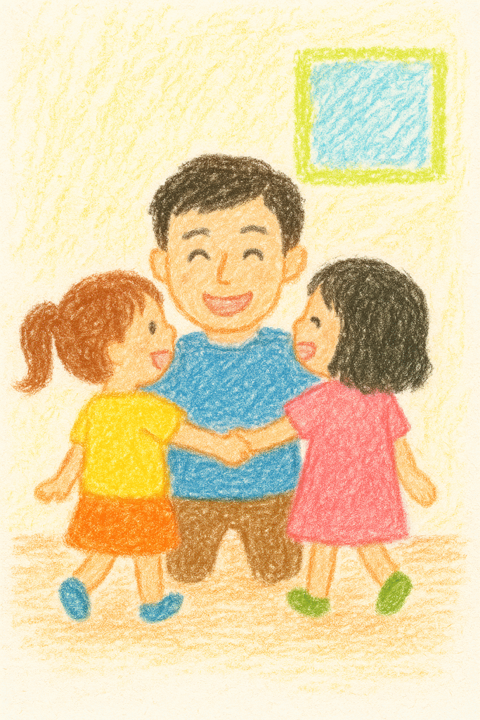 「こらこら〜!」なんて言いながらも、嬉しくてつい笑ってしまうパパでした。