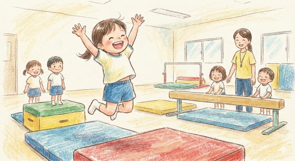 きっとマットの上をゴロゴロしたり、ジャンプしたり、全力で楽しんでるんだろうなあって想像すると、なんだかこっちまでニコニコ。