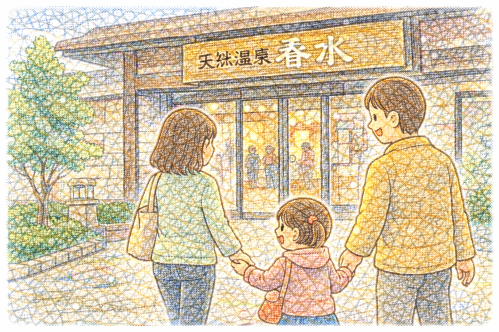 今日はお休みを使って、家族みんなで鶴見緑地にある天然温泉「春水」へ行ってきました。