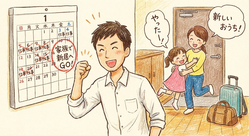 今回のメインイベントは、親戚の**「新居」**へ遊びに行くこと!🏠 ピカピカの新しいおうちに行けるって聞いて、4歳の娘は大はしゃぎ! 「新しいおうち行く〜! お兄ちゃん(親戚)いるかな〜!?」って、パパとママの周りをぐるぐる走り回ってます(笑)。