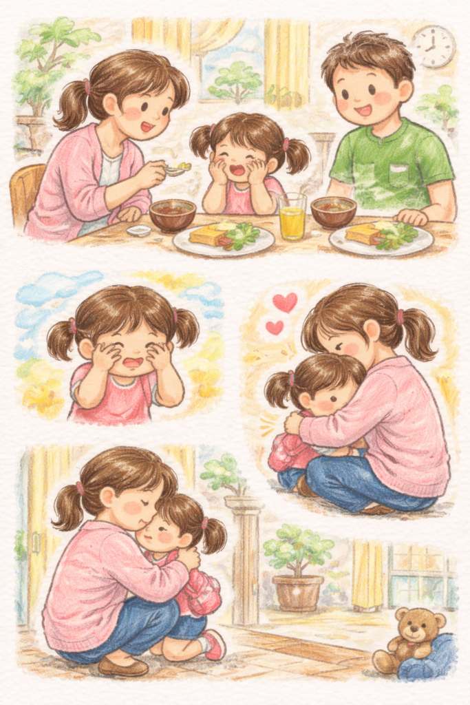 今朝、朝ごはんを食べている途中で、娘が急に泣き出してしまってびっくり。