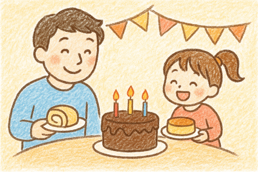 「いやいや、家にケーキあるのに何してるんやパパ…」