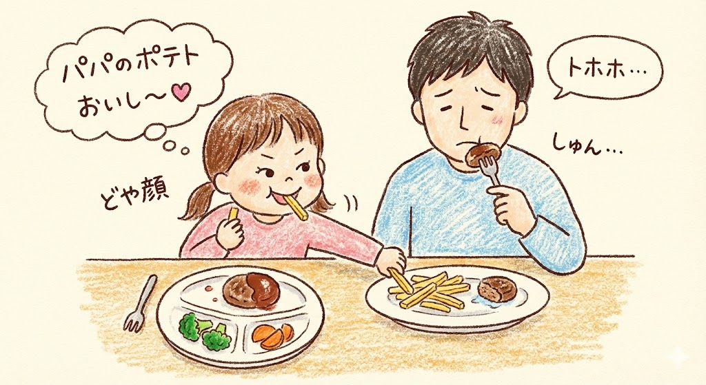 【ファミレスあるある】4歳娘の「絶対ハンバーグ!」の罠🍔…からの華麗なるポテト泥棒🍟